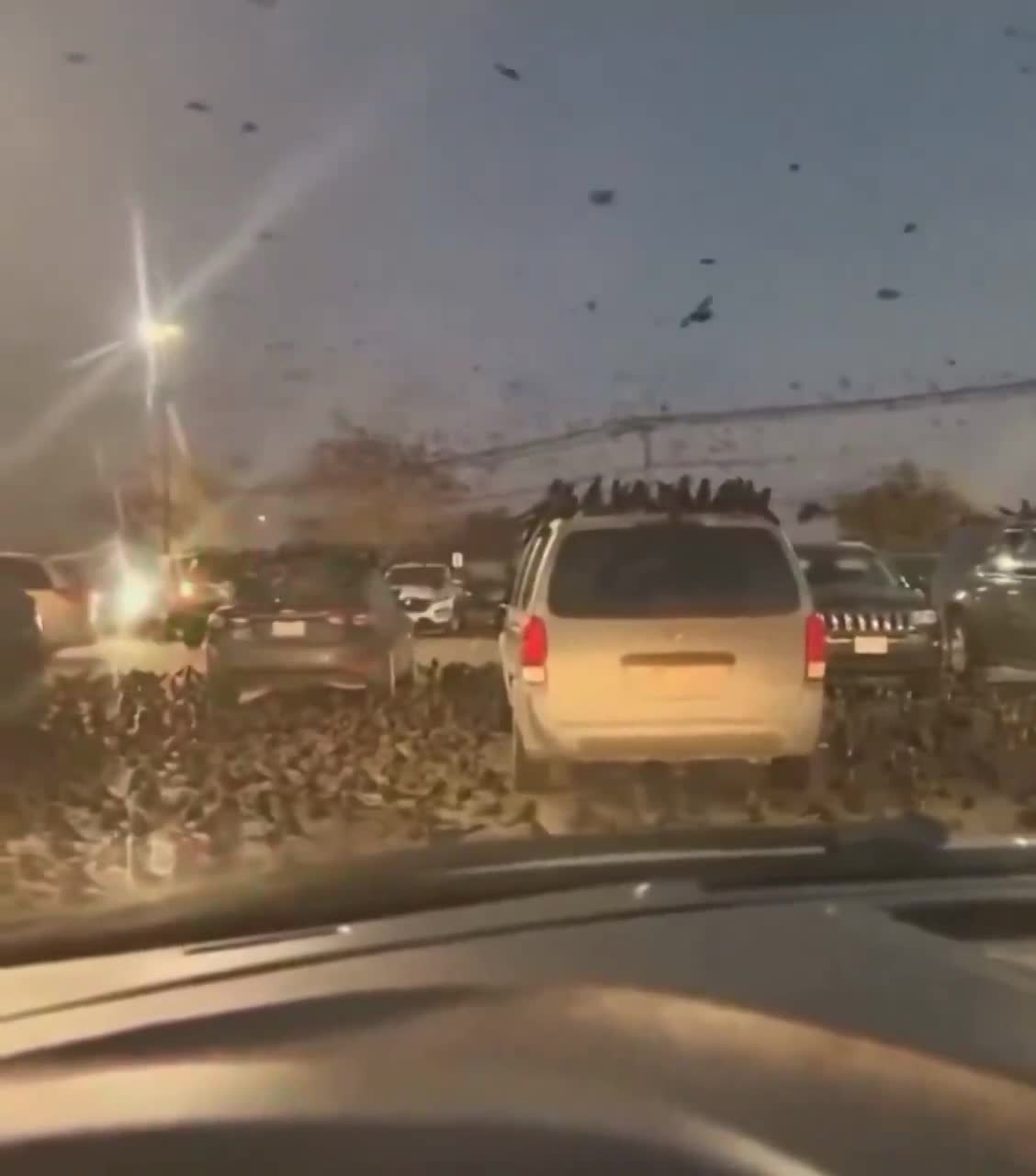 Footage of thousands of crows circling over Tel Aviv has gone viral online.