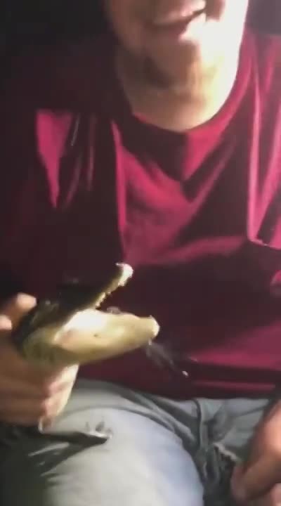 A BABY ALLIGATOR BITES A MAN'S DICK