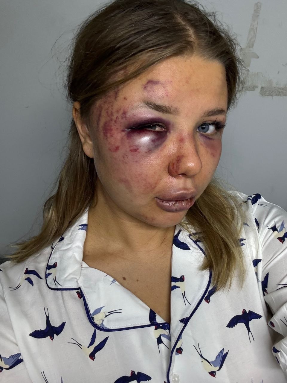 I don't think he hit her. It's more likely that the girl had an allergic reaction to peanuts. And she's using that to her advantage to lie and say her boyfriend hit her, just to get money out of him. Typical of modern women.