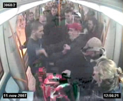 Thanks to the metro’s video surveillance cameras, it can be seen how, at Legazpi station on Line 3, around one hundred antifascists board a train on their way to take part in the counter-demonstration. In that car is Josué Estébanez, who takes a knife out of his pocket and hides it behind his back. Estébanez is wearing a Three Stroke sweatshirt, identified as a far-right skinhead symbol. One of the anti-fascist men getting into the car notices that Josué Estébanez is carrying the knife, but Carlos Palomino does not, and he confronts Estébanez about his sweatshirt. At that moment, Estébanez fatally stabs Palomino in the heart.
