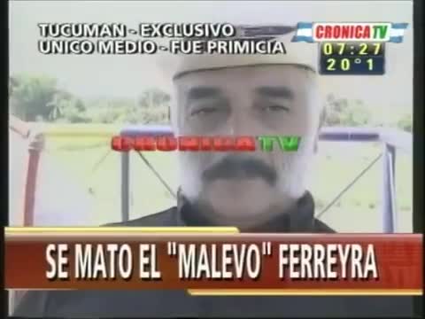 Malevo Ferreyra was an Argentine police chief. Being a police officer during the last Argentine Dictatorship, he participated in the State terrorism, repressing left-wing guerrilla groups in Tucuman province. After the return of democracy, he would become the chief of Tucumán Provincial Police. In this position, Ferreyra became involved in the murder of guerrillas members, and innocent civilians suspected of the same. He would later be prosecuted and discharged from the force. He shot himself in 2008, when facing his imminent arrest, and his suicide was broadcast live on national TV.