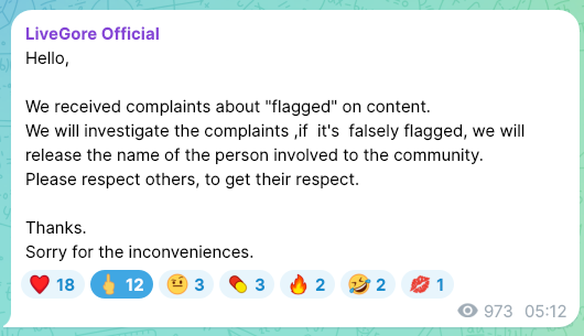 LiveGore is a reality news website which reports on real life events which are of the interest to the public. Includes videos relating to true crime that have been taken from across the world. Due to the graphic nature of materials found on Live Gore, access is restricted to adults only(18+). !!Please leave this website if you under that age!!