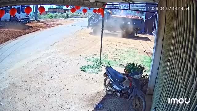 Dak Lak, Vietnam — A 26-year-old man on a motorcycle caught on a cable stretched between two trucks blocking the road and fell.