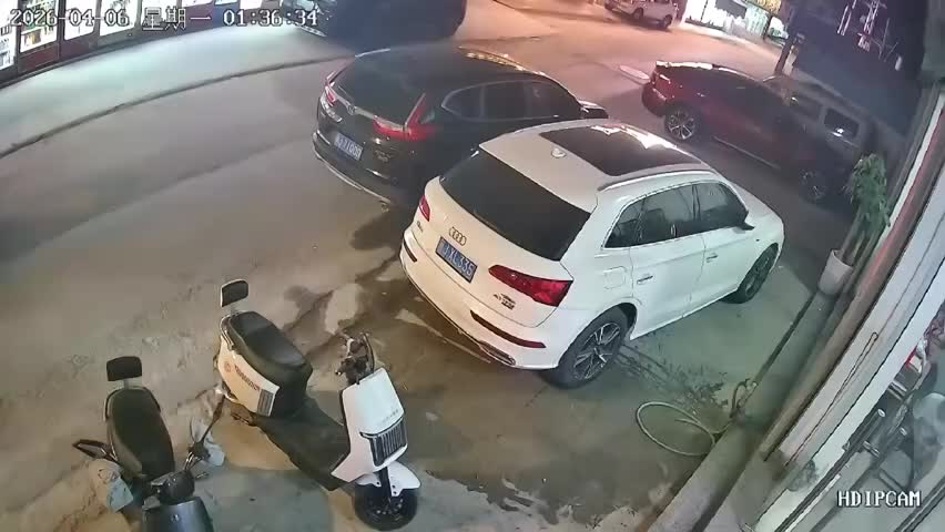 China — A woman riding at high speed without a helmet crashed into a parked SUV. She suffered minor injuries.