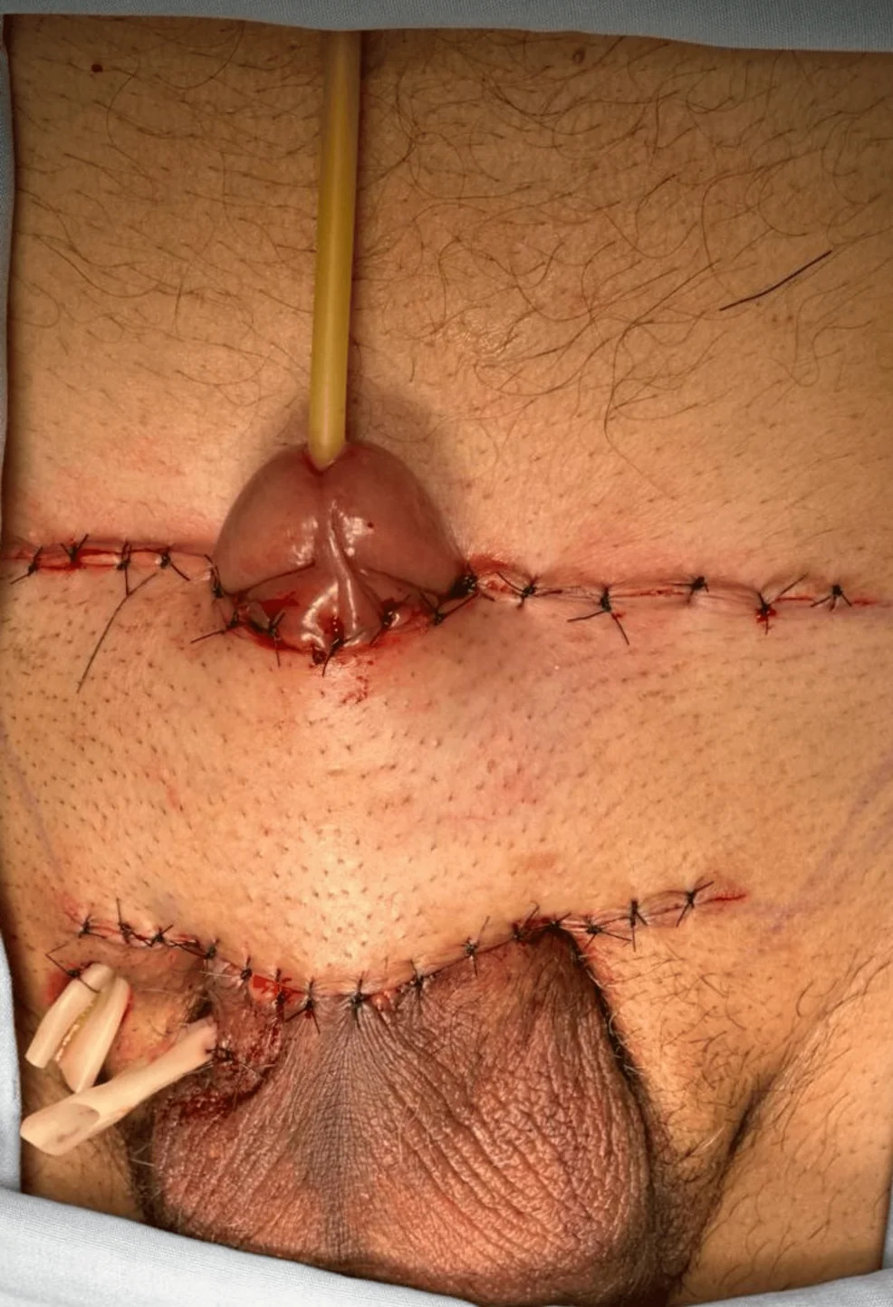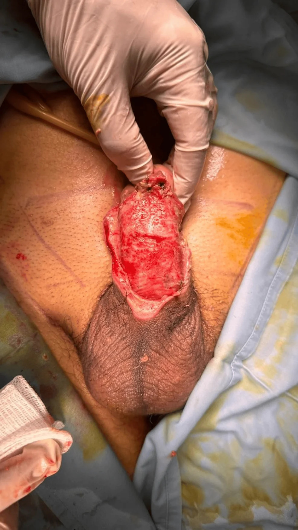 Interesting surgery xD, i can only imagine it is temporary and they will sow it back open when the skin has reformed on his weener