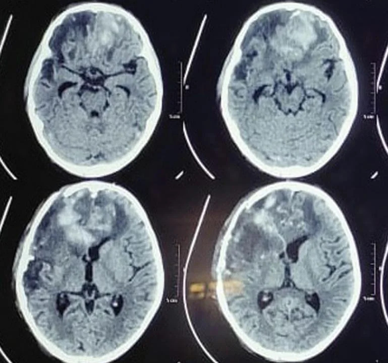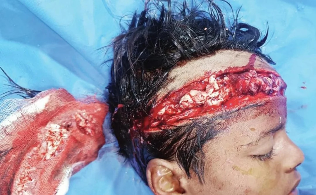 Fig 6: Preoperative clinical image of patient showing extent of injury with brain herniation.