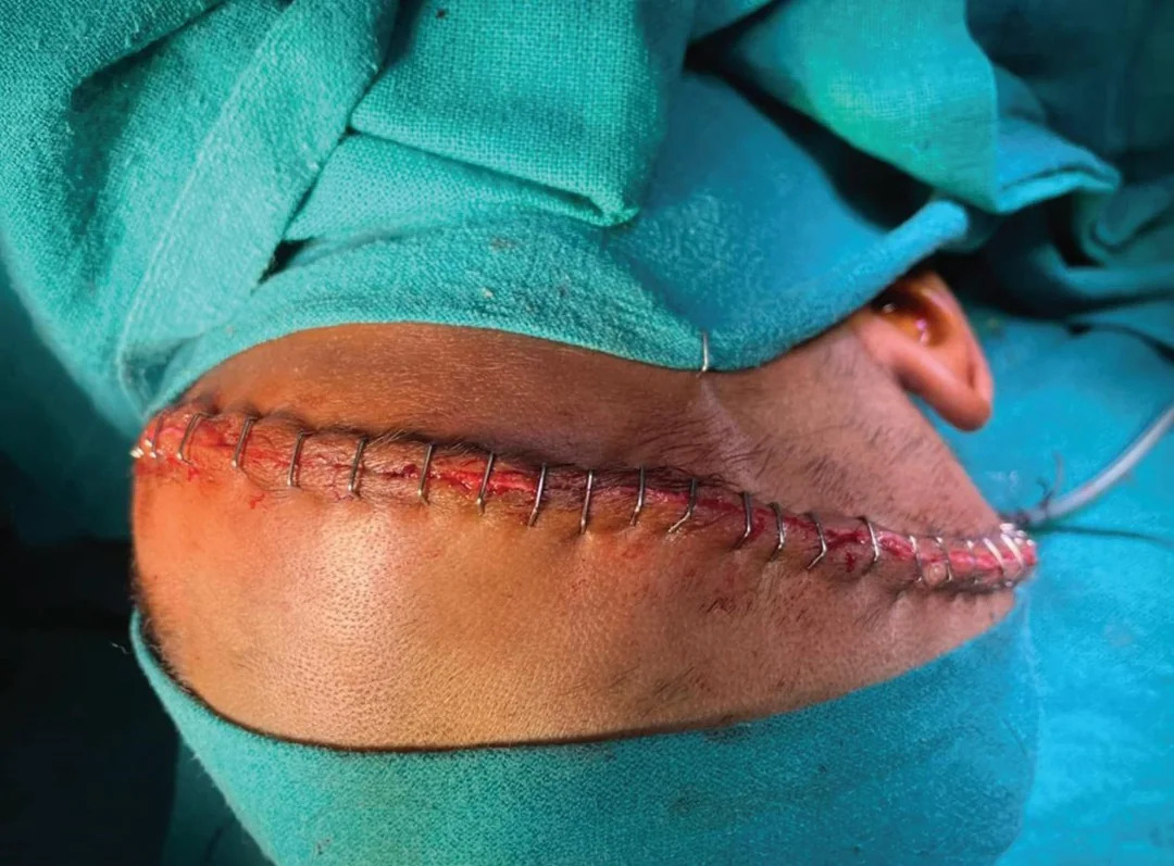 Fig 4: Postoperative image showing primary closure of the wound