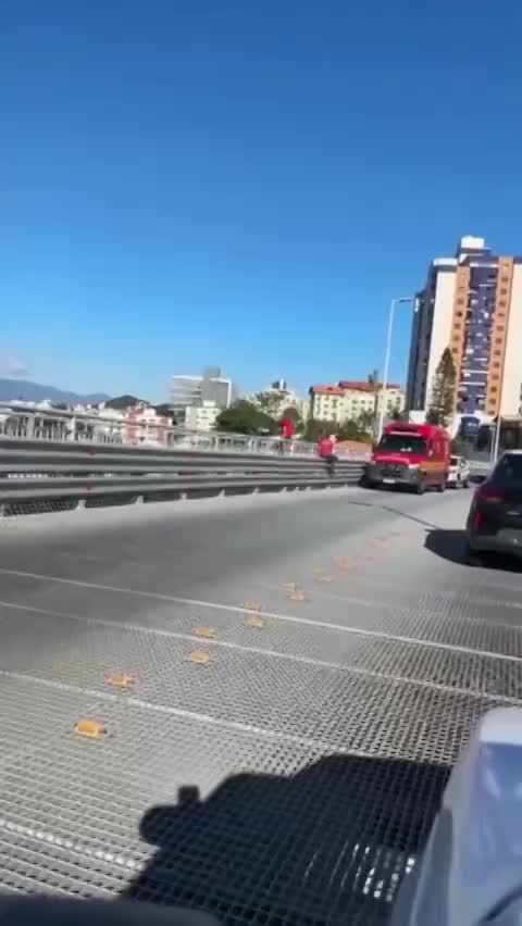 In Brazil, a man jumped to his death from a high overpass onto the highway.