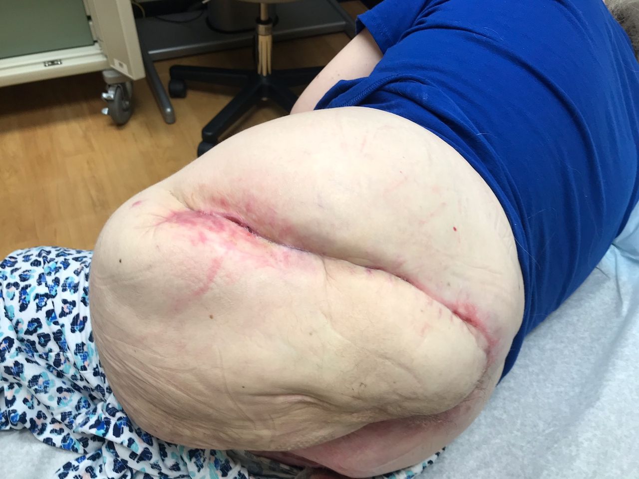 SAT ON HER ARSE FOR TOO LONG: Massive Pressure Ulcer