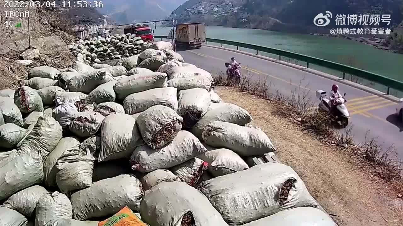 Funny how truck driver risked going off road to not hit the scooter and casuing minor injuries but ended up completely squishing the scooter.